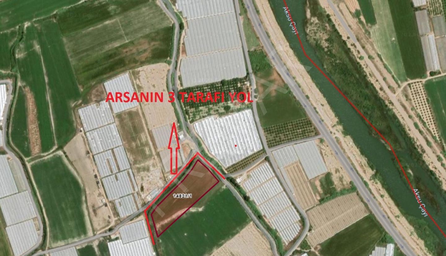 Antalya Aksu Kundu'da, üç cephesi yola çevrili, yüksek yatırım potansiyeline sahip satılık tarla!